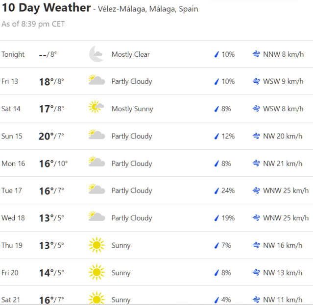Local Weather: https://www.accuweather.com/en/es/torre-del-mar/306652/weather-forecast/306652