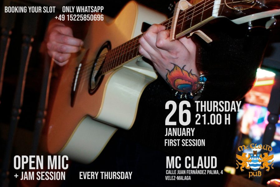 Pub McClaud, C/ Juan Ferrnandez palma 4, Velez-Malaga. Bring your own instrument or play what’s on the stage. One pint for participants. FB