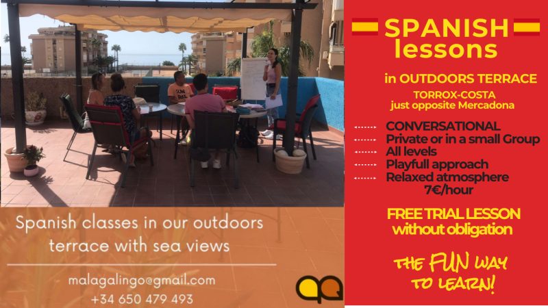 In 2023 fulfill your resolutions…..SPEAK SPANISH at last! Without struggling! Free trial lesson. Outdoor terrace, depending on the weather.
