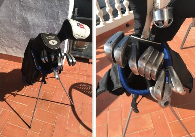 For Sale: Gents’ Golf Clubs comprising a full set of Wilson DI5 irons, 2 Drivers and other woods, Odyssey 2 ball putter in a Mizuno carry bag complete with balls (20+), tees, umbrella, scoop and all you need to play. €50.