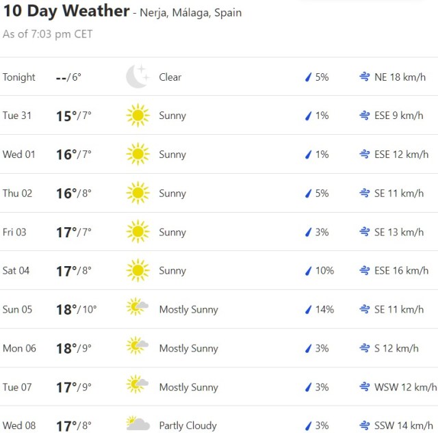 Local Weather: https://www.accuweather.com/en/es/torre-del-mar/306652/weather-forecast/306652