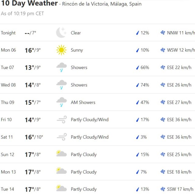 Local Weather: https://www.accuweather.com/en/es/torre-del-mar/306652/weather-forecast/306652