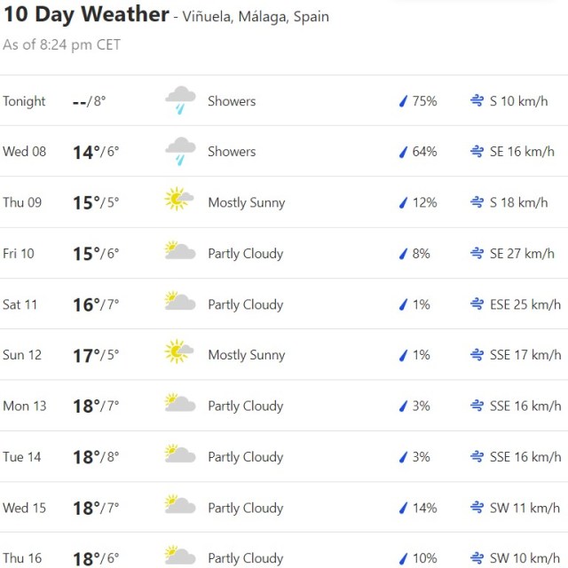 Local Weather: https://www.accuweather.com/en/es/torre-del-mar/306652/weather-forecast/306652