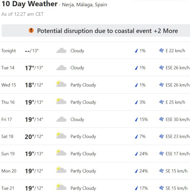 Local Weather: https://www.accuweather.com/en/es/torre-del-mar/306652/weather-forecast/306652