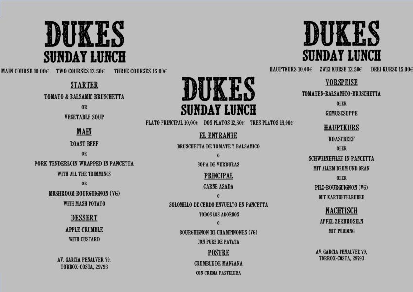 Dukes Sunday Lunch, Torrox Costa: March 5th