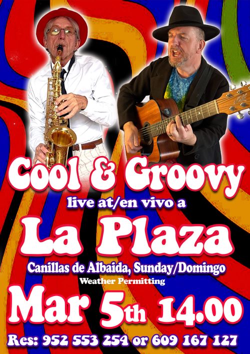 Cool & Groovy: Playing live at Posada La Plaza, La Plaza, Canilas de Albaida, Sunday 5th March from 2pm.