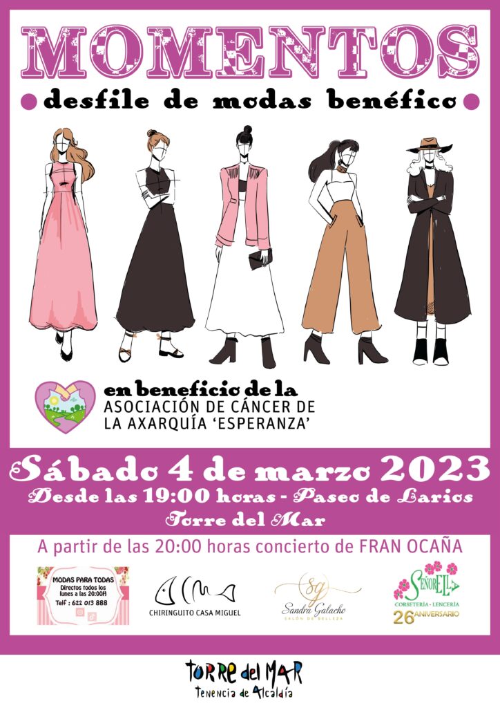 Charity Fashion Show Parade ‘Momentos’: Sat., 4 March, from 7pm on the Paseo de Larios in Torre del Mar. Later, starting at 8pm, there will be a concert by the artist Fran Ocaña.