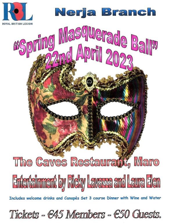 -Saturday 22nd. April Masquerade Ball, black tie – contact Kim @ Kim_bowe1@hotmail.com for tickets.
