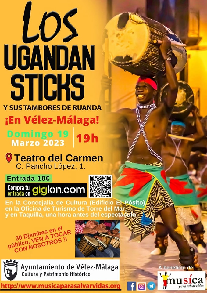 The Uganda Sticks come to Vélez-Málaga with their magnificent show ‘Los Tambores de Ruanda’: Teatro del Carmen, Sunday, 19th March, 7pm. Tickets: giglon.com, El Pósito and Torre del Mar Tourist Office (10€).