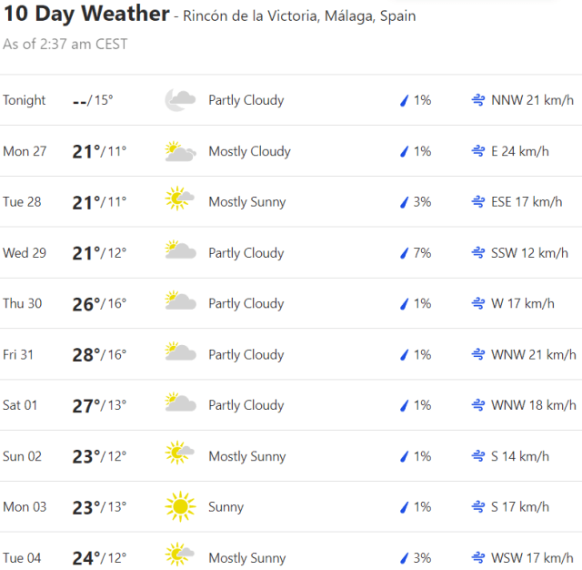 Local Weather: https://www.accuweather.com/en/es/torre-del-mar/306652/weather-forecast/306652