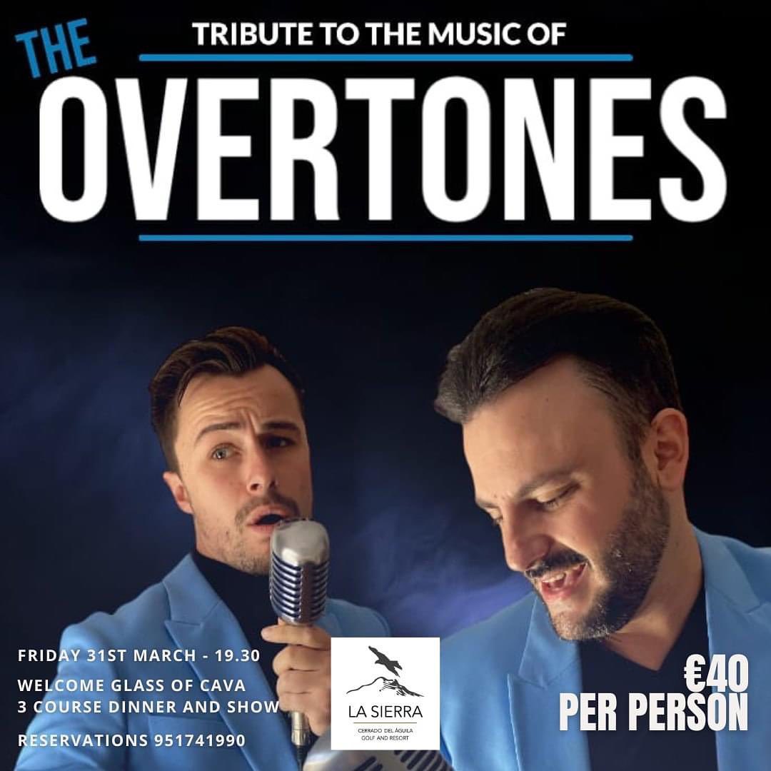 Come join us at La Sierra Restaurante – Cerrado del Águila Golf and Resort in Mijas for an evening of amazing vocals, dining and atmosphere! Red carpet arrival with welcoming glass of cava at 19.30 followed by a superb 3 course dinner and then a tribute show to the music of The Overtones. Book now by calling 951741990 and reserve your tables before their gone!