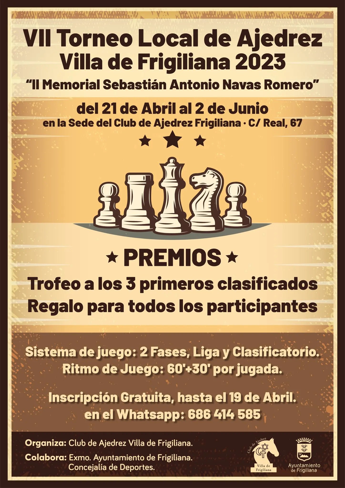 Source, Spanish: https://www.axarquiaplus.es/abiertas-las-inscripciones-para-el-vii-torneo-local-de-ajedrez-villa-de-frigiliana-2023/