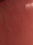 We have a red leather sofa which has a few deep scratches which were caused by our young dog jumping onto the seat.