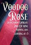 Voodoo Rose live in Posada La Plaza: Friday 2nd June. From 8pm. Come and enjoy great food, great drink, great company and a bit of Voodoo magic! La Poseda Canillas. For reservations 952553254 or 607167127