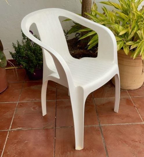 For Sale: 8 white plastic garden chairs. Hartman Bistro Club.