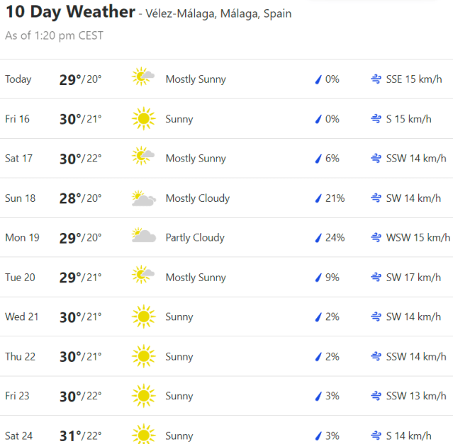 Local Weather: https://www.accuweather.com/en/es/torre-del-mar/306652/weather-forecast/306652
