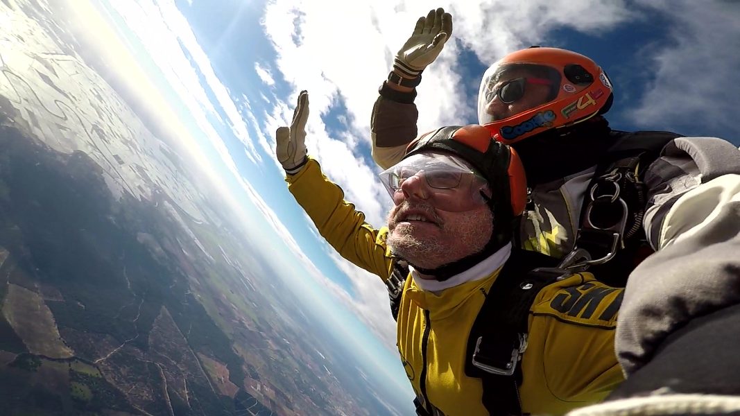 *(PS: I know the feeling. Pictured below is Señor Minigolf after having been not so gently nudged to a literal wing’s edge on his first skydive just east and 15000 metres above Sevilla. “You ready, Mister Scott?” asked my Italian instructor. I look back over my shoulder, “You still have a positive outlook on life, Luigi?” “I luva’ the life!”, he shouted. “Okay, then,” I say, “One, two, two and a quart- MINIGOLLFFFF!!!” [Don’t worry, first-timers at Minigolf are not required to carry an instructor on their back throughout the round.…])