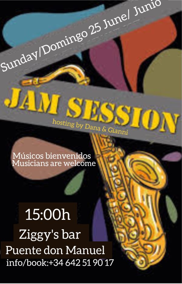 June Sunday 25th from 3pm at Ziggy’s bar Puente Don Manuel (in front of Scirocco). Whether you are musician or audience: come and bring with you your desire to enjoy a good afternoon of music! If you are a musician, bring your instrument and creativity with you, you are welcome! Info/book +34 642519017