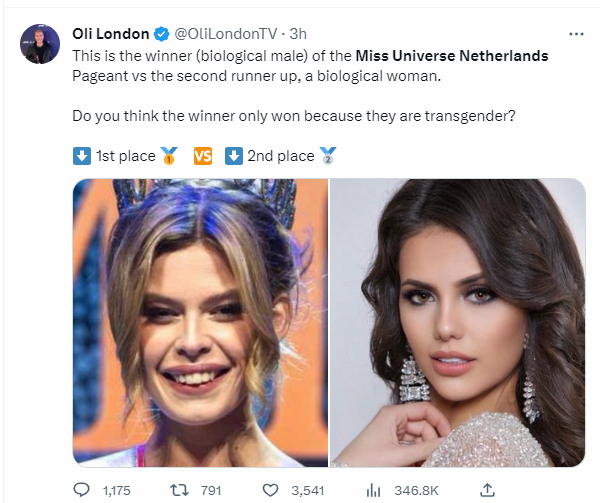 Transgender woman wins Miss Universe Netherlands, sparking outrage: A transgender woman has won the Miss Universe Netherlands competition for the first time ever. The 22-year-old actress and model, Rikkie Valerie Kolle {Kolle pic on left; runner-up, a biological woman, on right} won the contest over the weekend, meaning she will compete in the Miss Universe pageant in El Salvador this upcoming December. Kolle’s victory sparked outrage online, with many saying in various replies to her social media posts that she “only won” because of a “woke agenda,” and implying that she stole the win from other contestants. Full article: https://cbsaustin.com/news/nation-world/transgender-woman-wins-miss-universe-netherlands-sparking-outrage-transgender-rikki-valerie-kolle-beauty-women-pageant