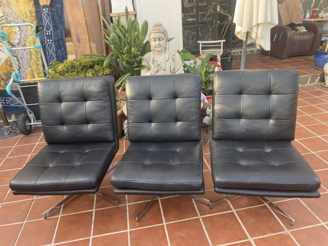 – 3 leather swizel easy chairs Width 57cms Depth of seat 50cms Height 40cms Price 70€ each