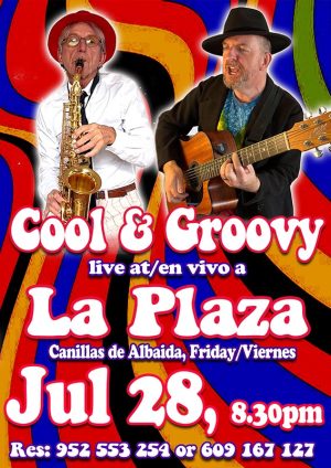 Cool & Groovy: On Friday July 28th, 8:30pm, Cool & Groovy play live at Posada La Plaza. A fantastic setting in Canillas de Albaida, if Steven Spielberg designed a set depicting a beautiful Andalucian village square it could not be more idyllic than this!