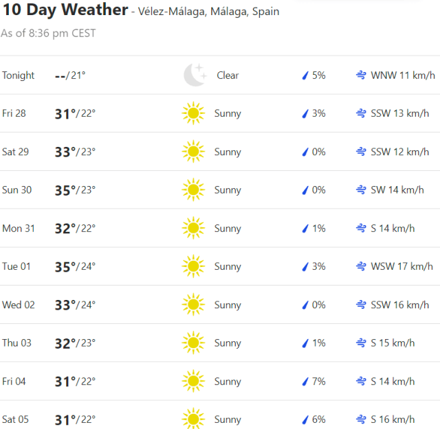Local Weather: https://www.accuweather.com/en/es/torre-del-mar/306652/weather-forecast/306652