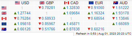 Exchange quotes from x-rates.com