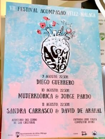 Vélez-Málaga’s VII Acompasao Festival: August 9, 10 and 11 at the Cerro de San Cristóbal Auditorium, it will feature a flamenco and fusion festiva featuring Sandra Carrasco, Jorge Pardo, Mujerklórica and Diego Guerrero. Tickets will be free, until full capacity, and there will be a bar service. All the concerts will start at 10:30 p.m., with the opening at 9:00 p.m. Video Link