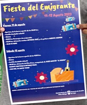– Friday. At 8pm the bar, the children’s bouncy castle and music open. And at 10pm there will be a tribute to the emigrants, to then give way to a musical performance by singer Antonio José, who will be accompanied on guitar by Gabriel Cabrera. DJ Nene will close Friday night.