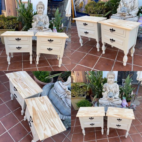 – Castillan style bedside units. New wood top. Waxed. Color Beige. Measurements 49 x 32 x 56cms Price 110€ (the pair)