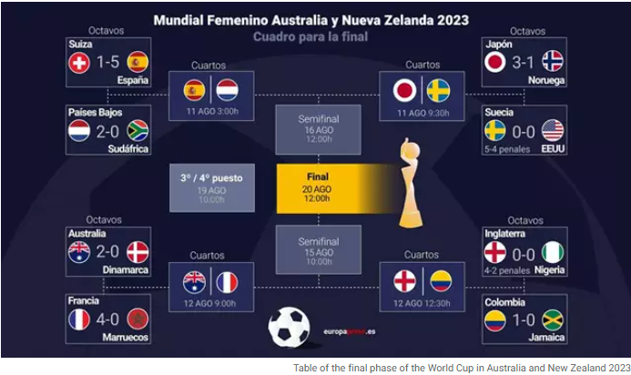 Football News- Table of the final phase of the Women’s World Cup in Australia and New Zealand 2023: