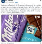 Food Alert for a Milka chocolate distributed in Andalusia: {Translation, summary}