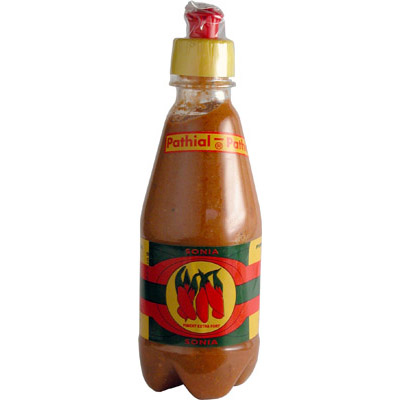 Hot Tips: {DigameXtra} If you love your food, or Bloody Marys, hot and spicy, you need to stop into the Halal grocery on the West side of BLQ 80, Torrox Costa. There you will find a wide variety of spicy condiments, and not in tiny little overpriced jars. They have large (400gr) and very large (700gr+) jars of wonderful exotic chili sauces, sambals, smoked hot pepper pastes and extra hot Dijon mustard, for €2.50 to €4.50 each. Their mustard, the hottest Dijon I’ve tried, is only €4.50 for a giant 1065gr jar! I found the thick Senegal hot yellow pepper sauce Pathial-Sonia (Extra Fort) to be better than any of the supermarket Tabasco clones, €2.50 for 330ml. See pic.