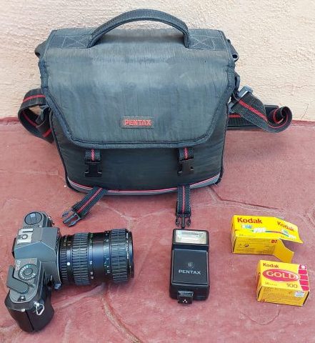 – Pentax P30 film camera, with flash and 2 spare film