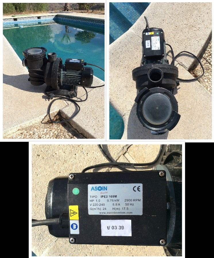 For Sale: Swimming pool pump by Asoin. Five years old. Recently cleaned by Mecol. In good working order. New approx 280€. For sale, 90€.