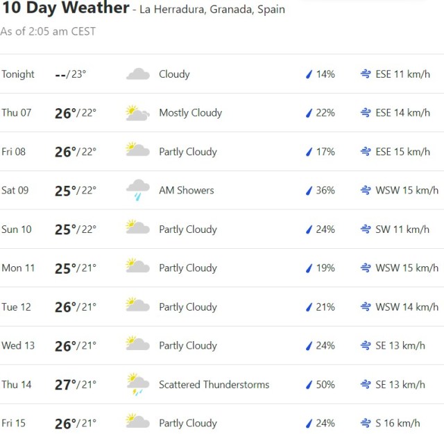 Local Weather: https://www.accuweather.com/en/es/torre-del-mar/306652/weather-forecast/306652