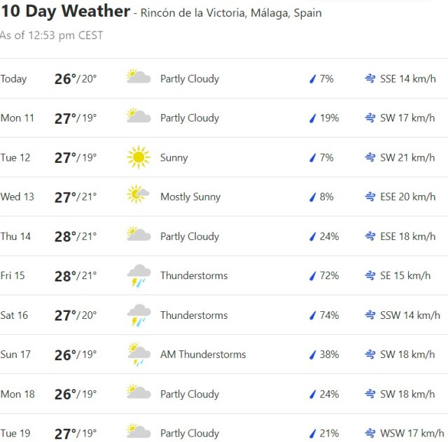 Local Weather: https://www.accuweather.com/en/es/torre-del-mar/306652/weather-forecast/306652