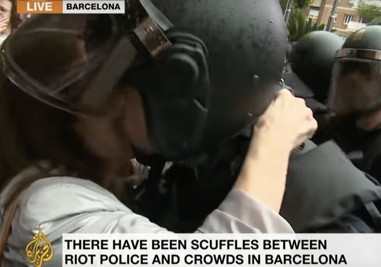 – The kiss, caught on video, occurred when the officer, then in the Police Intervention Unit (UIP), was in front of the Department of Education, on Via Augusta in the Catalan capital, under the order to seize the ballot boxes. It was there where, while he was holding the line, with his helmet visor raised, one of the demonstrators grabbed his head and kissed him.