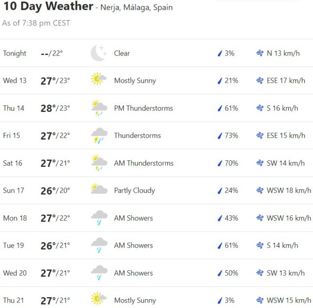 Local Weather: https://www.accuweather.com/en/es/torre-del-mar/306652/weather-forecast/306652