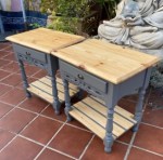 – Matching bedside units Natural top ( danish oil ) Grey colour Bronze handles Measurements 50 x 34 x 55cms Price 110€ the pair