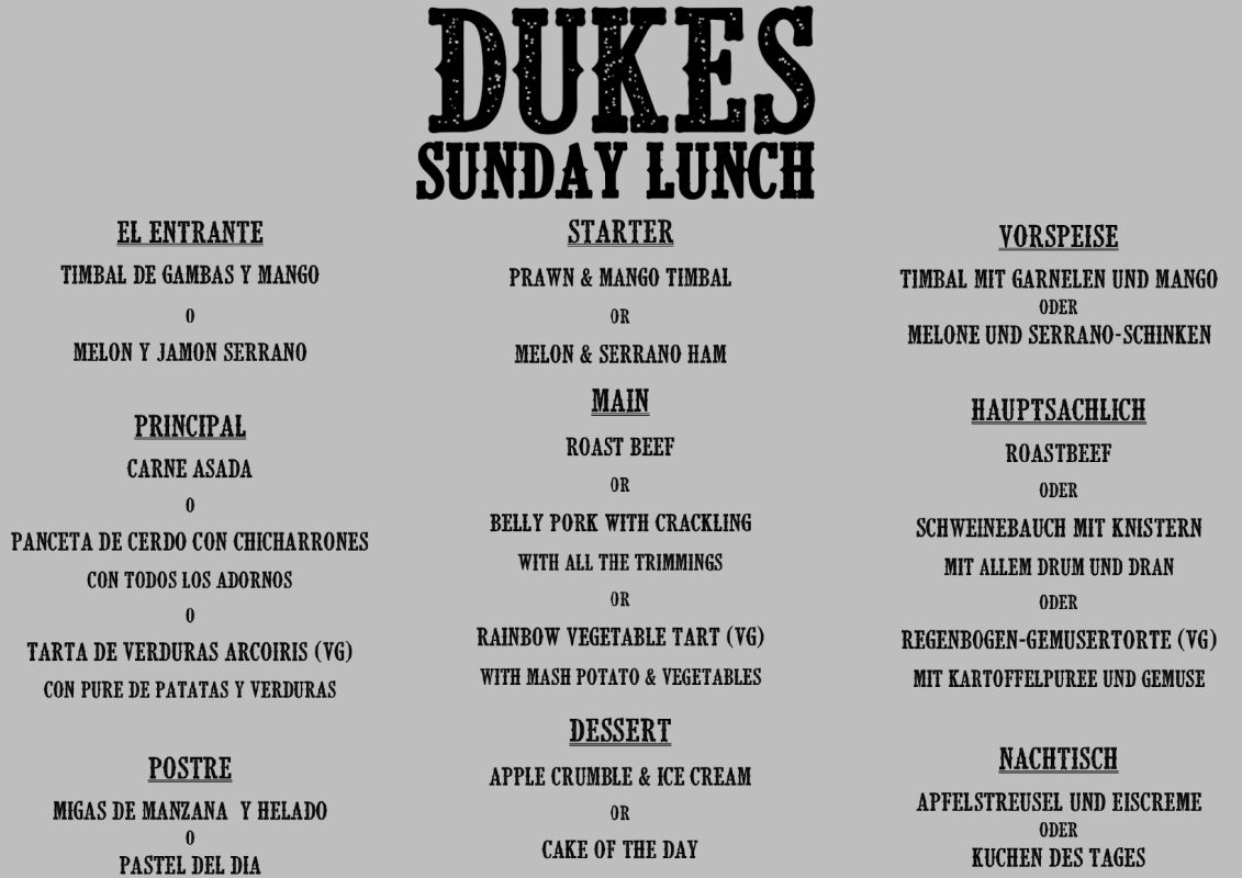 Dukes Bar- Torrox Costa: Sunday Roast is Back!