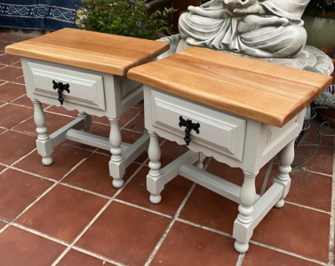 – Castillan style bedside units Solid natural wooden top (danish oil) Beige colour Measurements 49 x 44 x 50cms Price 110€ the pair