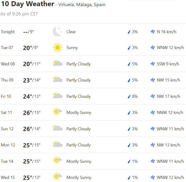 Local Weather: https://www.accuweather.com/en/es/torre-del-mar/306652/weather-forecast/306652