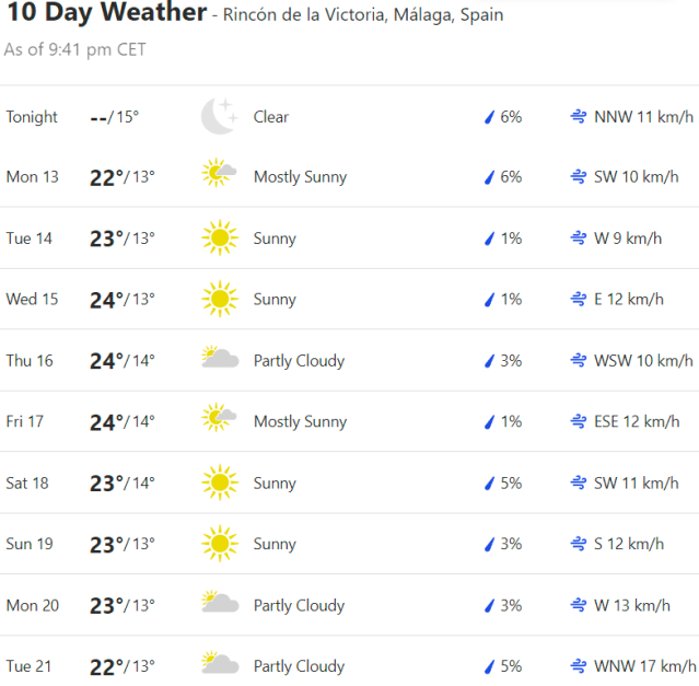 Local Weather: https://www.accuweather.com/en/es/torre-del-mar/306652/weather-forecast/306652
