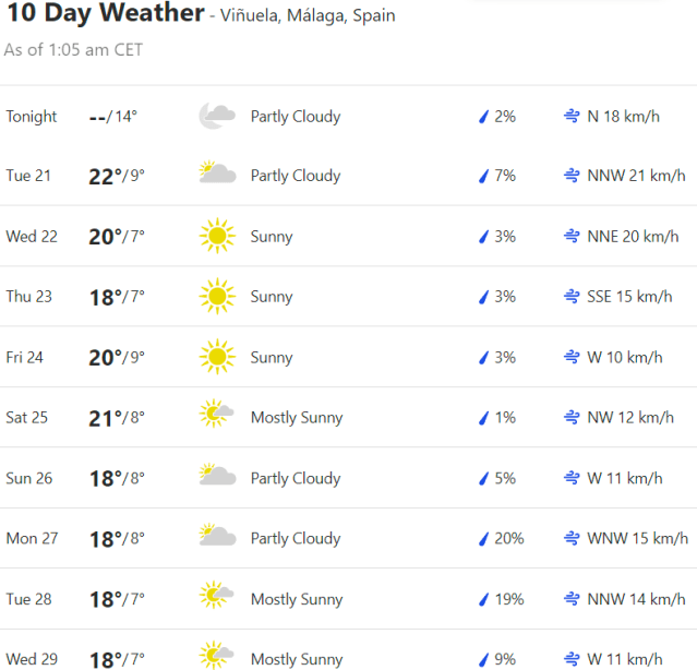 Local Weather: https://www.accuweather.com/en/es/torre-del-mar/306652/weather-forecast/306652