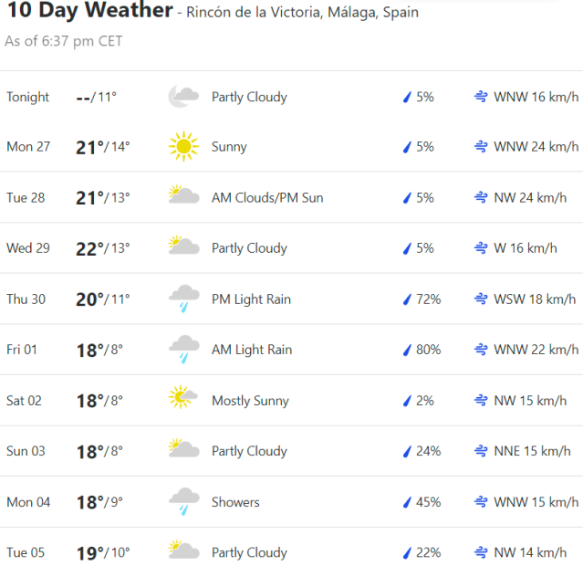 Local Weather: https://www.accuweather.com/en/es/torre-del-mar/306652/weather-forecast/306652