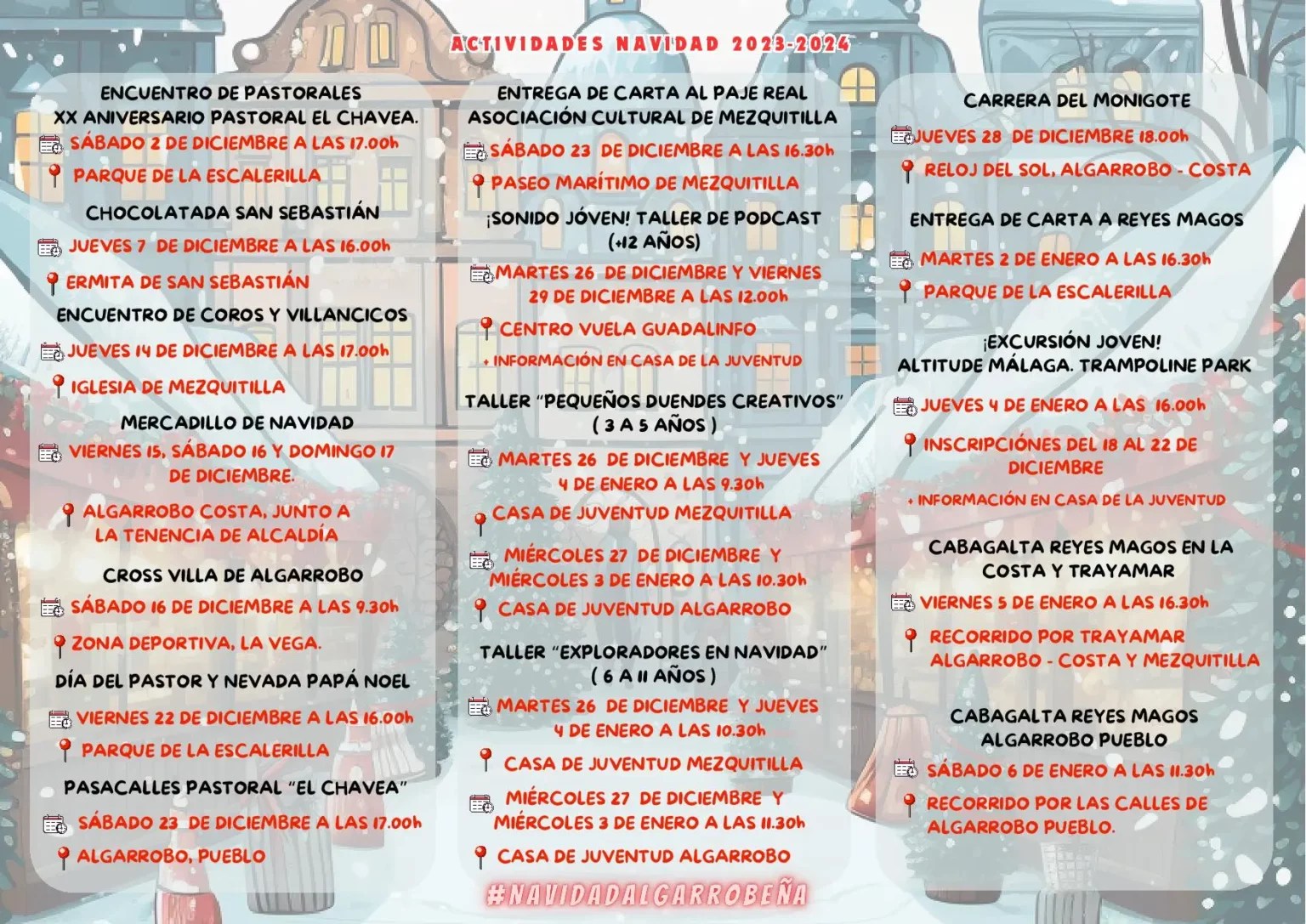 – The programme will start on Saturday 2 December at 17:00 with the traditional Encuentro de Pastorales de la Pastoral El Chavea (meeting of shepherds or herders). The event will take place in the Escalerilla Park and will feature performances by four pastoral groups from Algarrobo, Málaga, Nerja and Vélez-Málaga.