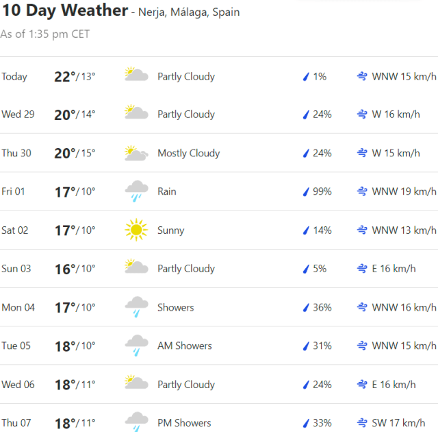 Local Weather: https://www.accuweather.com/en/es/torre-del-mar/306652/weather-forecast/306652