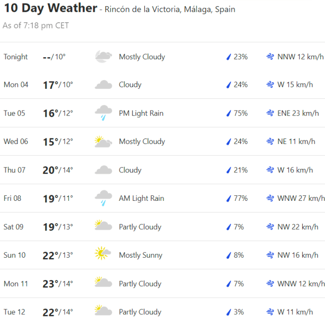 Local Weather: https://www.accuweather.com/en/es/torre-del-mar/306652/weather-forecast/306652