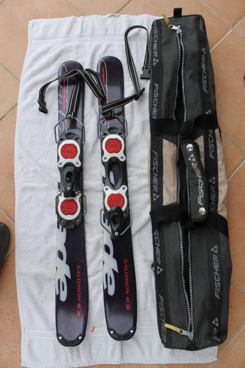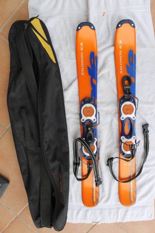 – Solomon ski blades, orange. 90 cm long, comes with ski bag. 50 euros.